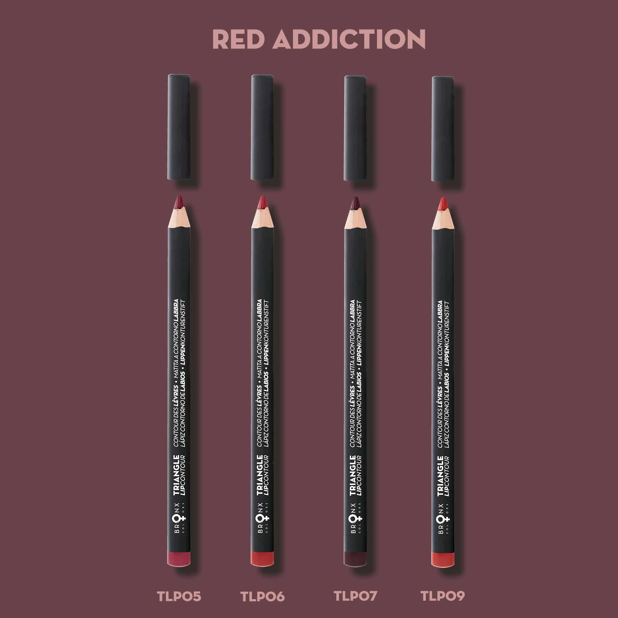 Das Red Addiction Bundle enthält 4 farbintensive Lipliner: TLP05, TLP06, TLP07, TLP09. Seine dreieckige Form gibt Ihnen den perfekten Halt, um makellos gezeichnete Lippen zu kreieren. Dieses Bundle ist perfekt für Liebhaber von intensiven und tiefen Rottönen!