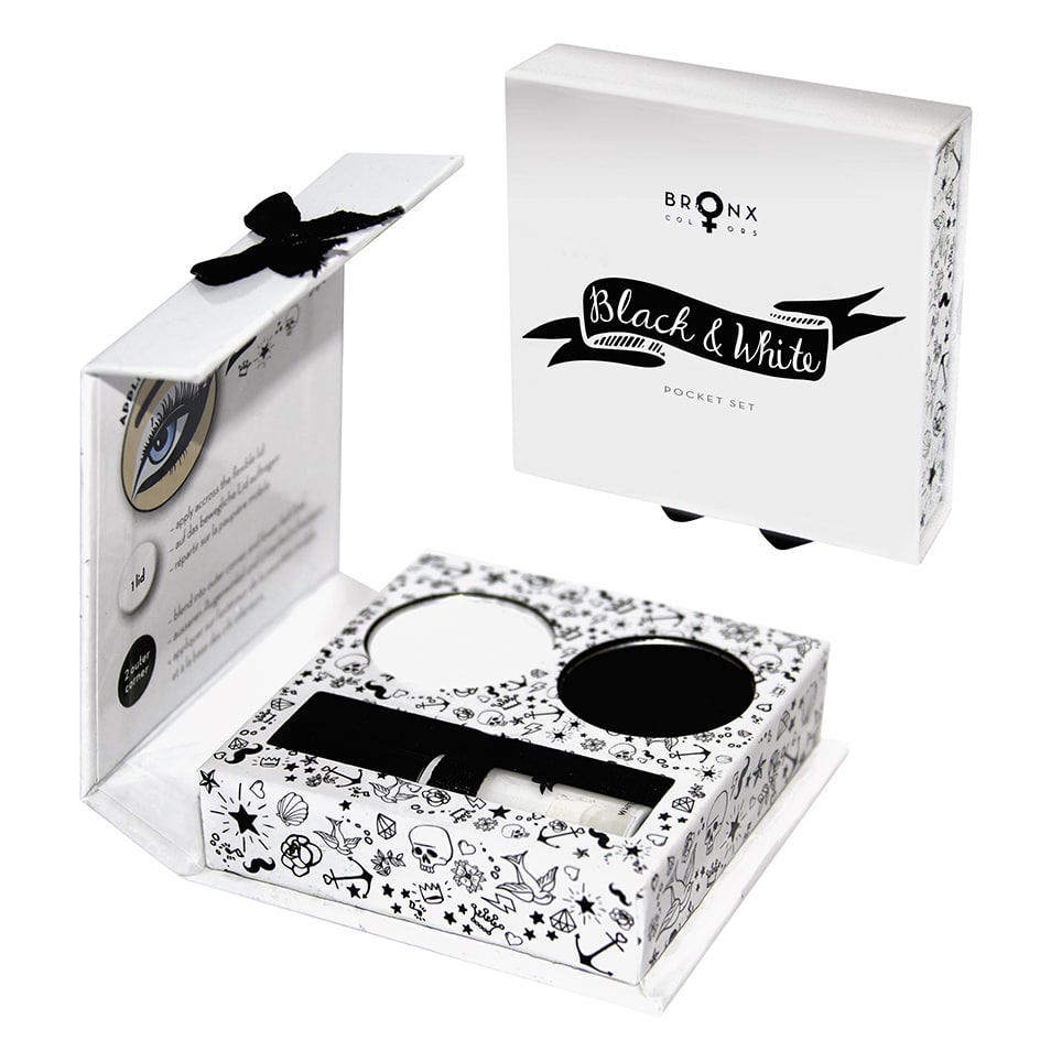 Alles, was Sie brauchen für schöne Augen mit einem professionellen Look, ist das Bronx Colors Black & White Pocket Set. Bringen Sie Ihre Augen zum Funkeln mit weißem Liquid Liner. Wenn Sie Ihre Augen aufhellen, sehen Sie sofort wacher aus und frischen Ihren Alltagslook auf.